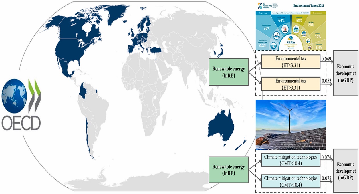 Abstract:The development and application of climate mitigation technology and environmental tax alleviating the pressure on energy transitions in OECD countries, but little effort has been made to clarify the role of climate mitigation technology and environmental tax in renewable energy consumption-economic growth. To fill this gap, this study uses panel data for 38 OECD countries over the period 2000-2020, and examines the nonlinear impact of renewable energy consumption, climate mitigation technology, environmental tax and economic growth by using a dynamic panel threshold model. Our investigation verifies the threshold effect of climate mitigation technology and environmental tax in the relationship between renewable energy consumption and economic growth. Our findings highlight the fact that, with the development of climate mitigation technology, renewable energy consumption has a significant positive impact on economic growth, and the impact coefficient is significantly larger in high-carbon areas than in low-carbon areas. The threshold effect of renewable energy consumption on economic growth is more significant in high-carbon regions, using environmental taxes as the threshold variable. The results of this study are unique and our findings deepen the literature's understanding of the relationship between climate mitigation technology, environmental tax, renewable energy consumption, and economic growth.