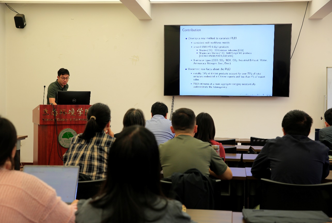 赵浩老师分享了以《产品层面排污强度的测度和应用》为题的报告。赵浩老师提出在HS六位数的高度细分层面计算产品级排放强度的新式研究方法,其计算结果涵盖二氧化碳、水污染和空气污染物等九个排放类别。通过分析2000年至2013年中国的企业级排放数据,赵浩老师得出以下四个结论:第一,不同产品的排放强度差异显著;第二,排放强度最高的10%产品几乎占总排放量的75%,但仅占总出口产值的4%;第三,传统的基于行业的分类显著低估了排放强度的变化;第四,中国的出口结构没有显示出向高排放强度产品的专业化趋势。该研究成果为贸易和环境的政策协同制定提供了重要参考。
