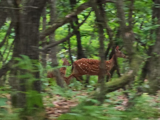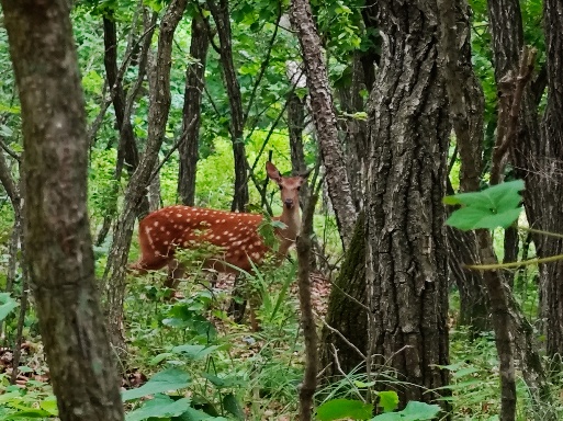 7月12日凌晨4时,调研团师生在野外生态观察专家兼摄影师谷宝臣老师的带领下,前往虎豹国家公园的野外观测点开展实地观察。林间寒露未散,队伍行进途中观测到十余只野生梅花鹿。