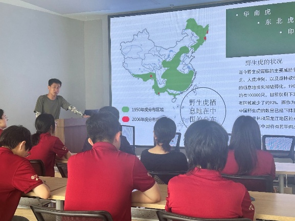 返回驻地酒店后,谷宝臣老师又为大家带来了一堂生动的自然体验课。课堂上,他展示了自己拍摄的珍稀野生动物影像资料。从东北虎的威严身姿到各类珍稀鸟类的灵动瞬间,栩栩如生的影像让大家进一步了解了东北虎豹国家公园内丰富的野生动物物种及其生活习性。同学们纷纷表示,通过这样的沉浸式体验,对这片土地上的动植物物种多样性有了更全面的认知,受益匪浅。