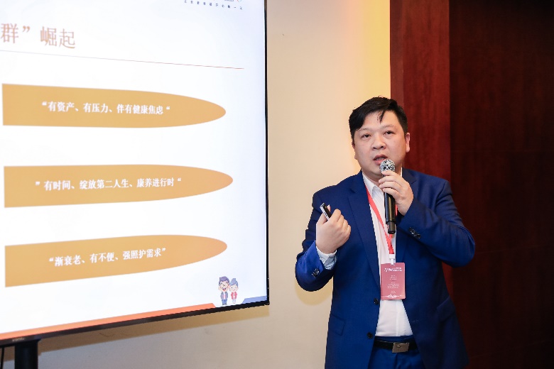 重庆光大百龄帮康养产业集团有限公司总裁陆家斌发表了题为“长寿时代下的银龄康养思考”的报告。他介绍了光大集团在金融、环保、健康等领域的综合优势,并展示了光大养老如何通过其“1+5+N”特色发展战略,构建全面的康养服务体系。他指出,康养消费正从被动养老转变为主动康养,旅居消费也在追求更高品质的体验。针对当前康养旅居市场存在的问题,如旅养产品供需错配、标准和监管缺位等,他提出了光大养老的解决方案,包括定制个性化的康养主题游、提供健康管家服务、以及建立全闭环的健康管理服务。