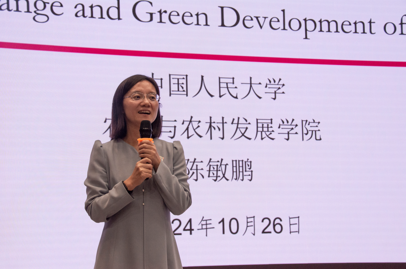 陈敏鹏教授围绕《气候变化与农业绿色转型》作主旨演讲,讲解农业系统在气候变化背景下的发展方向。全球食品系统能够满足人类的生存需求和文化认同。然而,气候变化对农业系统造成产量减少、资源利用效率低、病虫害增多等复杂影响。在实现碳中和与粮食安全的双重目标下,农业绿色发展需要建立系统性的政策框架,综合运用生态系统和社会经济解决方案,增强系统韧性、提升资源利用效率、改善土壤固碳能力,减少价值链内的碳排放。