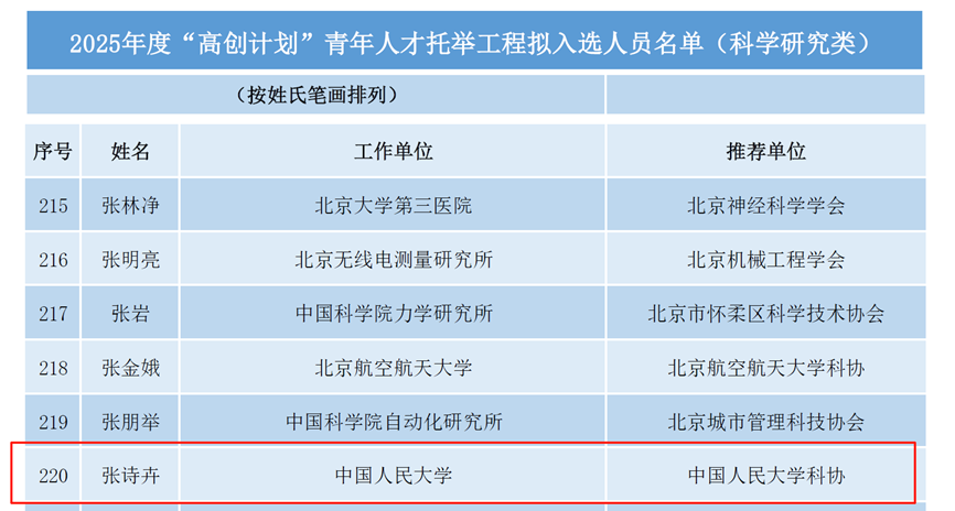 天乐代言太阳集团138青年教师张诗卉入选北京市2025年度“高创计划”青年人才托举工程