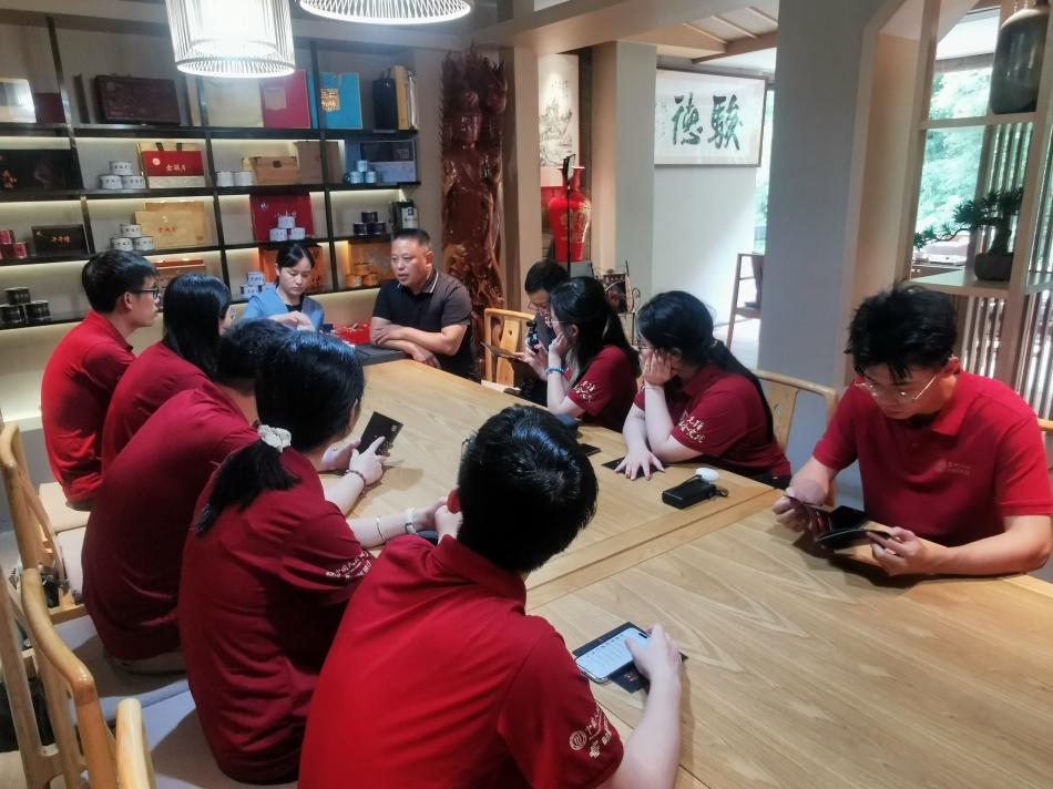 7月9日下午,师生调研团前往桐木村,走访金骏眉发源地骏德茶厂,实地考察生态产品价值实现的创新实践。在茶香氤氲的茶室里,金骏眉首泡制作人梁骏德先生与传承人梁天雄先生向调研团生动讲述了创制金骏眉的传奇历程,"从萎凋、揉捻到炒制、烘干的反复试验与改进,最终成就了这一缕松香",梁骏德先生这段饱含匠心的创业故事让在场师生深刻感受到传统工艺与现代创新的完美融合。梁天雄先生向师生详细介绍了桐木村优质的生态条件,讲述了金骏眉的品牌故事。他指出,"这些天然屏障和独特的小气候,造就了茶叶不可复制的‘松烟香、桂圆味’,这正是武夷山赐予我们最珍贵的生态馈赠。"在品鉴环节,师生们通过琥珀透亮的茶汤、馥郁持久的香气,切身感受到"骏德标准"如何将生态优势转化为品质优势。感悟到:传统工艺的传承需要与时俱进的创新精神;体会到:严格的生态保护不仅成就了茶叶的独特品质,更通过品牌溢价实现了生态价值的市场化转化,这正是'绿水青山就是金山银山'理念的生动诠释。茶厂"古法为基、标准为要、生态为本"的发展模式,为生态产品价值实现提供了可复制的成功范例。