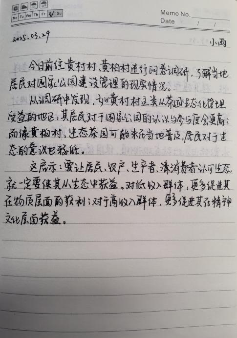南平市GEP核算工作以“地方需求导向、科学框架支撑”为准则。3月17日至19日,团队在指导老师张波带领下,专题研员工态价值核算的数字化工具,聚焦程序工具、数据代替等实操难点;指导老师马本于20日至21日主持理论辨析会,梳理GEP与生态补偿、绩效考核的政策衔接逻辑。24日,团队与南平市发改委郑科长深入座谈,直面基层数据“堵点”——乡镇层级数据获取困难,需依赖“平替数据”;生态补偿、绩效考核等应用场景需进一步明确。