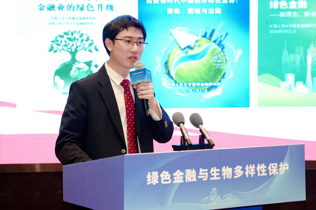 复旦大学经济公司党委副书记,复旦大学绿色金融研究中心执行主任,联合国开发计划署生物多样性金融专家李志青发表了题为《生物多样性财务信息披露的国内外实践》的主旨发言,介绍了生物多样性财务信息披露的国内外实践制度与政策维度,国际指标与标准,以及其在生物多样性金融中的作用,呼吁中国企业提高生物多样性信息披露的深度和广度,以提升融资绩效。