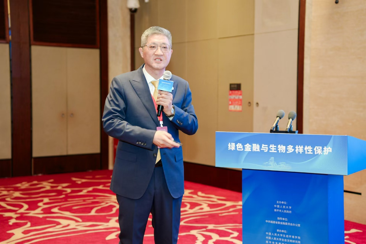 江苏省金融业联合会副理事长、绿色金融专委会主任束蘭根发表了《加强生物多样性保护,深化绿色金融创新》的主题演讲。指出国家发展改革委等部门印发的《绿色低碳转型产业指导目录(2024年版)》,以及中国人民银行等部门印发的《绿色债券支持项目目录(2021年版)》都已将生物多样性保护相关项目纳入。束总全面介绍了生物多样性金融的前沿发展,对武夷山国家公园生多保护金融提出多项创新建议,包括构建相关政策框架,创新绿色信贷、绿色债券与基金、绿色保险产品,加强绿色金融基础设施建设,建立绿色项目库,对参与生多保护的金融机构和企业进行信用评级,搭建绿色金融信息服务平台等。
