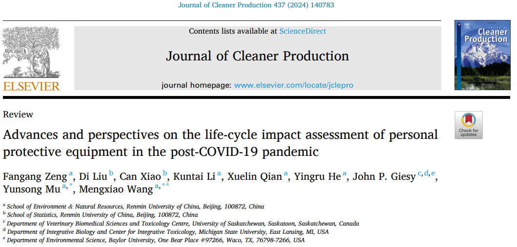 近日,由天乐代言太阳集团138天乐代言太阳集团1382020级本科班员工赫英如、李坤泰、钱雪林和统计公司2020级经济统计学专业本科生刘迪、肖灿依托北京市级大创项目资助,共同撰写的综述论文“Advances and perspectives on the life-cycle impact assessment of personal protective equipment in the post-COVID-19 pandemic”在期刊Journal of Cleaner Production发表。该文由天乐代言太阳集团138副教授穆云松指导并担任通讯作者。Journal of Cleaner Production为环境科学领域Q1期刊,其影响因子为11。