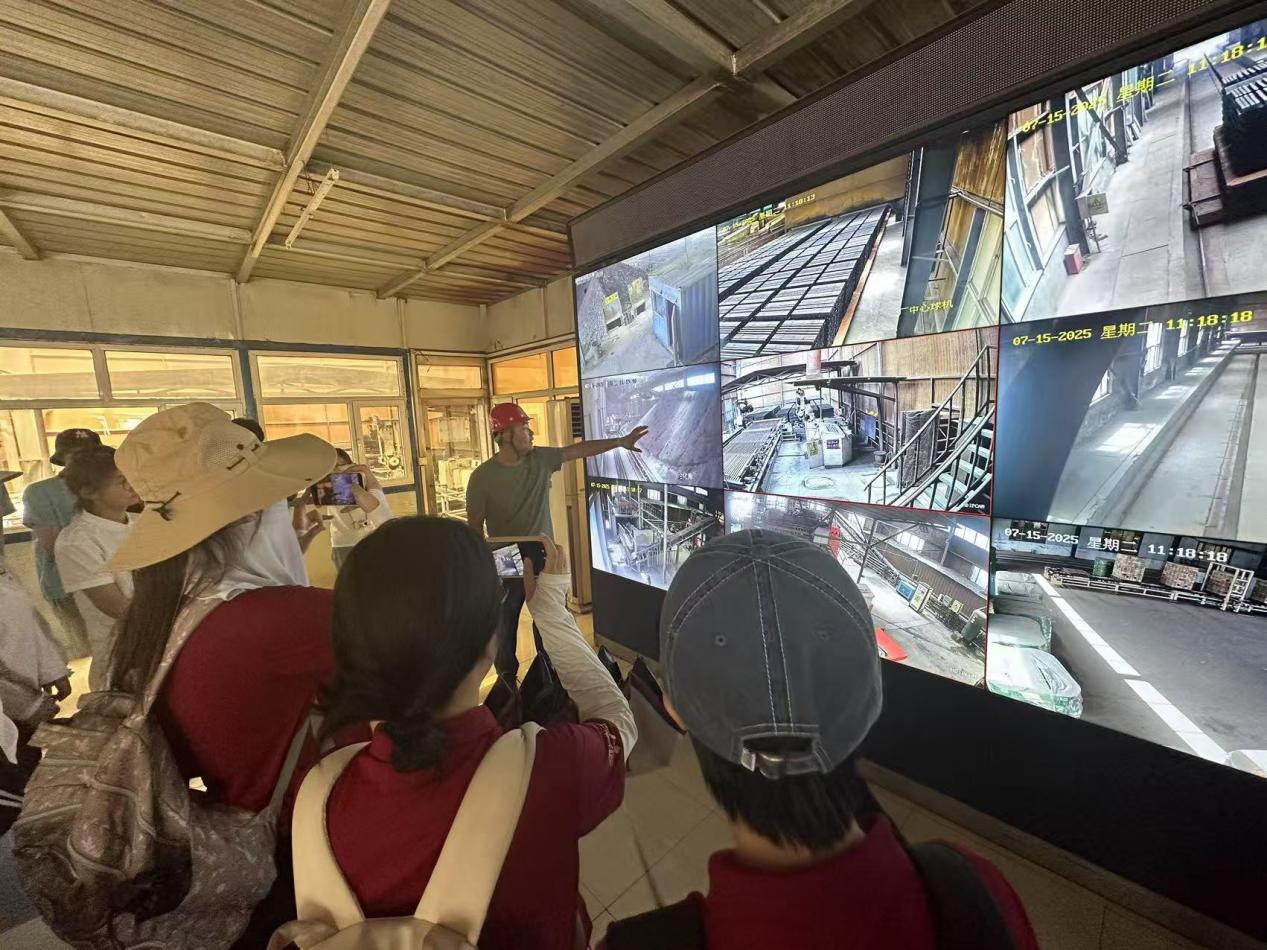 实践团师生走进乌兰木伦村红河情煤矸石烧结砖厂,参观了现代化生产线的有序运转:破碎机将大块煤矸石破碎,研磨成粉,再经真空挤出机塑形、高温焙烧……一道道工序后,原本污染环境的煤矸石就变成了高强度标砖。“我们的真空压力超过6Mpa,每年能消耗35万吨煤矸石,产砖9000万块以上。”厂长介绍道。煤矸石制砖工艺绿色清洁,产出的砖块质量优良、性价比突出。建砖厂不仅有效壮大了村集体收入,还解决了50多位村民的就业问题,让他们实现了“家门口上班”的愿望。交流中,师生们纷纷对这一“变废为宝”的循环经济模式表示赞叹。