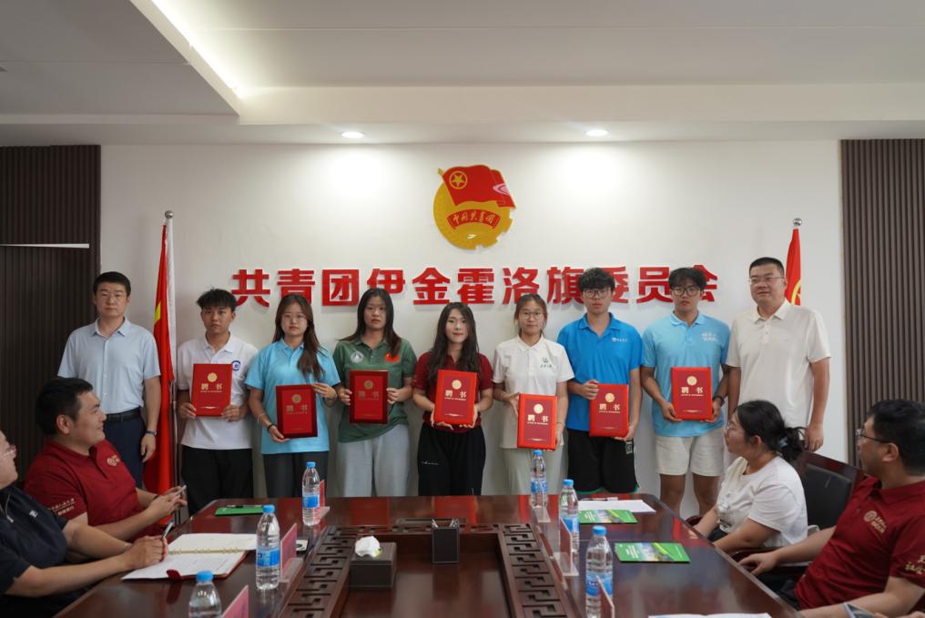 实践团带队老师和员工代表参加了在伊金霍洛旗举办的青年人才座谈会暨青年城市推介官聘用仪式。座谈会上,伊旗相关部门负责人详细介绍了面向青年人才的优惠政策以及青年城市推介官的核心职责,并向七所高校的青年城市推介官颁发聘书。天乐代言太阳集团138王纪云同学作为代表之一,正式受聘成为伊金霍洛旗青年城市推介官。