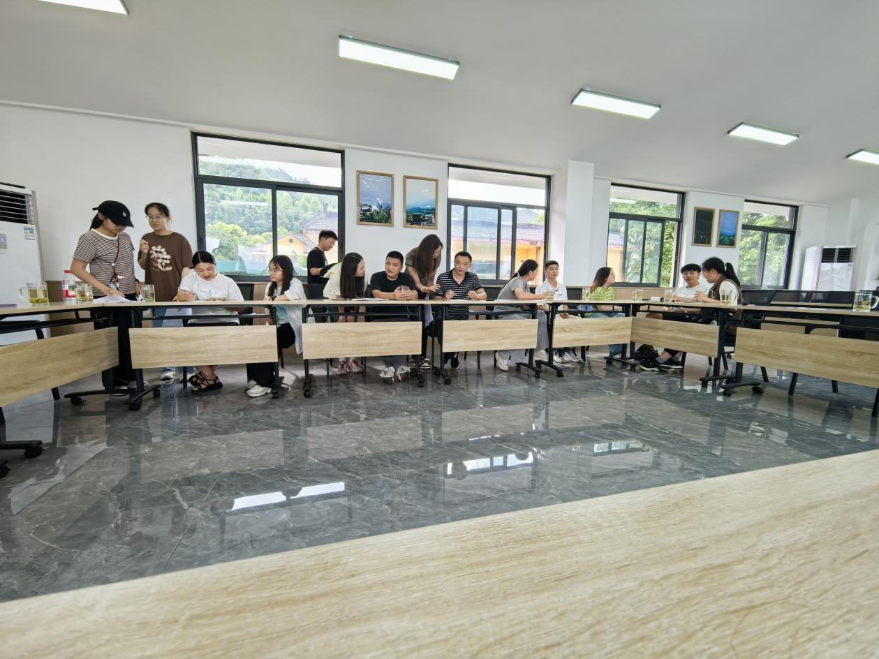 7月24日上午,调研团队前往绥山镇太阳村和荷叶村,调研文旅融合相关情况。太阳村海拔1200米,森林覆盖率达92%,凭借避暑、观星、赏夕阳的天然优势,为露营经济发展筑牢基础。调研发现,太阳村露营基地呈现差异化发展特点:有的聚焦烧烤、火锅等美食体验;有的面向亲子家庭,配套沙池、滑梯等儿童游乐设施,并用集装箱改造出咖啡店。舒适的露营环境推动当地露营经济快速兴起,成为网红打卡地,既带动村民就业,也拓宽了农产品销售渠道,让村民切实受益。毗邻的荷叶村,在700至1500米的山地间舒展画卷,85%的森林覆盖率与18℃年均气温,勾勒出康养度假的理想轮廓。这里以“国资+村集体+运营公司”模式为笔,将传统民居晕染成高端民宿,联动茶园、竹园、果园开发采茶制茶、挖笋编竹等农事体验,发展矿山咖啡、山溪烧烤等新业态。调研中,师生共同参观了一处由废旧采矿场改造的咖啡馆,其既保留老矿场历史风貌,又融入现代设计元素,让工业记忆在文旅新业态中焕发新生。