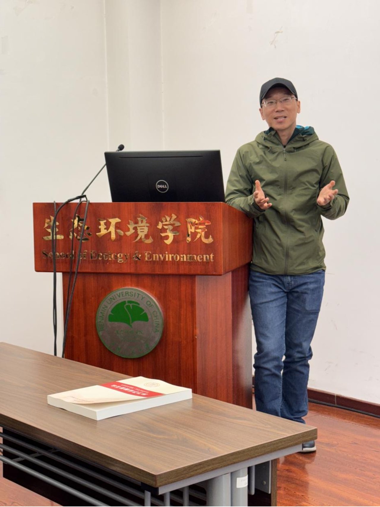 指导教师代表张红亮副教授发言。他围绕感受、认知、行动三个方面总结反思这次实践活动在自然保护区的所见所感。在感受方面,师生走入核心区,亲身体验了大自然的壮丽与和谐。那一刻,大家不仅是观察者,更是参与者,感受到了生态之美的震撼。这种体验让大家明白唯有亲身实践才能真正理解生态的价值。在认知方面,师生在调研中发现,生态保护与经济发展并不是对立的,而是可以相辅相成的。通过实地考察,了解到许多地方在保护生态的同时,依然实现了经济的可持续发展。这种双赢的模式值得大家深入研究和推广。在行动方面,希望大家能够将课堂与田野的学习结合起来,主动参与到生态环境的建设中去。无论未来走向何方,都要记住保护环境是我们每个人的责任,从感受到认知,再到行动,共同为生态环境的美好未来贡献力量!