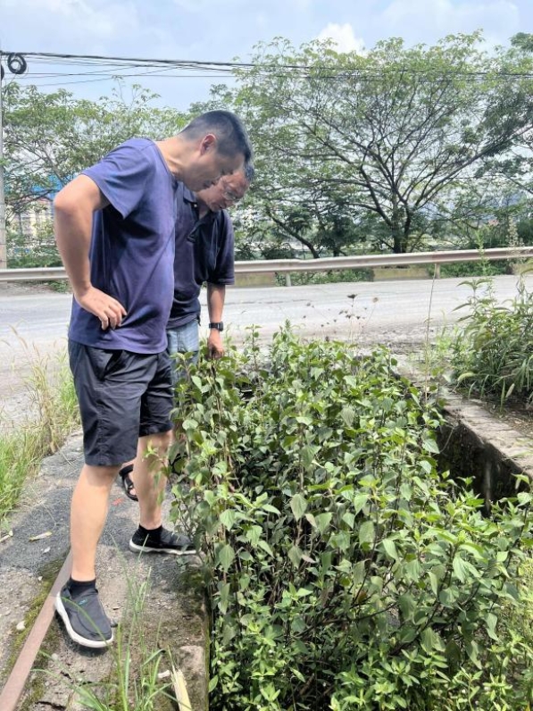 7月23日,调研组跟随市农业农村局负责人来到宜宾市外来入侵物种红火蚁的分布位点,记录位点生境、入侵面积、防治手段和监测方案,深入交流红火蚁入侵路径和防治成效,同时关注公众宣传工作,探讨如何提高民众对红火蚁危害的认知。