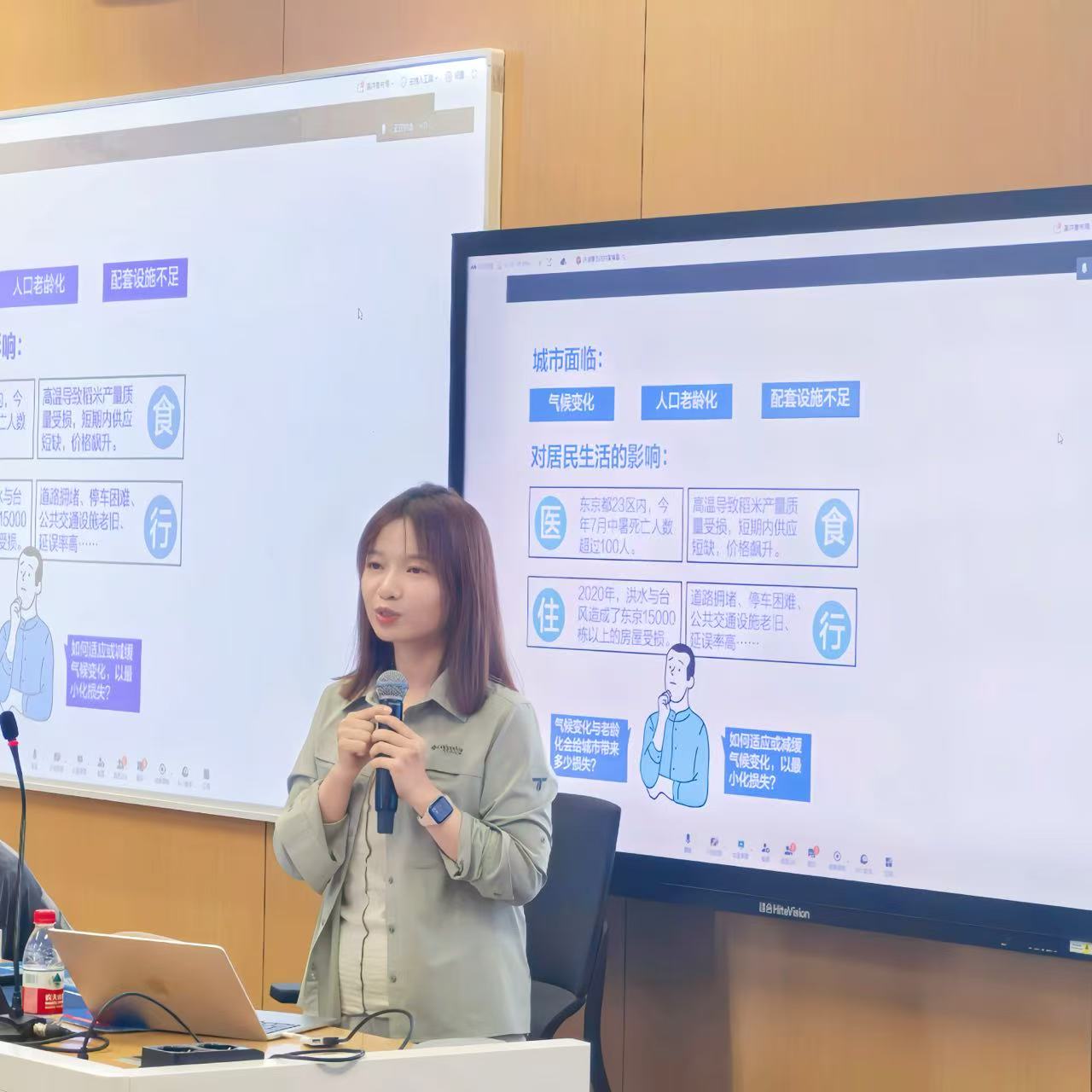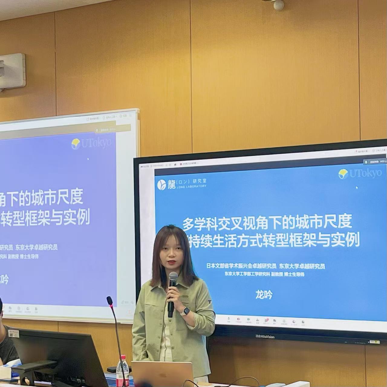 龙吟副教授首先介绍气候变化、人口老龄化、空气污染等重大社会背景,提出传统城市治理模式正面临前所未有的挑战,需要发展可持续生活框架以应对当前问题。她指出, 基于可持续生活方式的实现,必须兼顾环境目标和个人福祉,以满足多样化群体对于健康、营养、便利与舒适的追求。